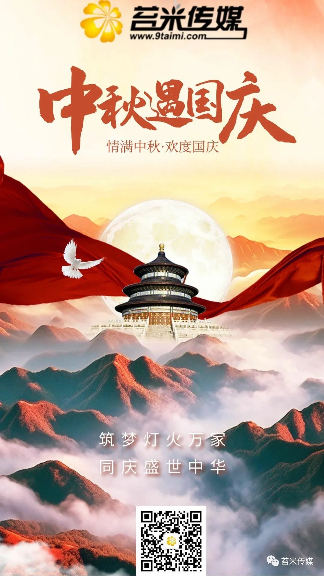 中秋遇国庆,情满中秋,欢度国庆。在此,苔米传媒全体恭祝伙伴们节日愉快,阖家幸福!