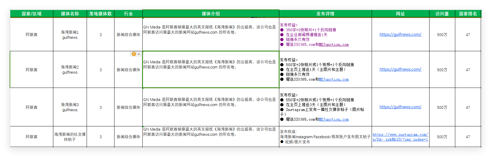 方案四,则专注于社交媒体推广,利用海湾新闻GulfNews的Instagram、Facebook和领英账户发布图文帖子或视频/图片,为企业提供更广泛的社交媒体曝光。