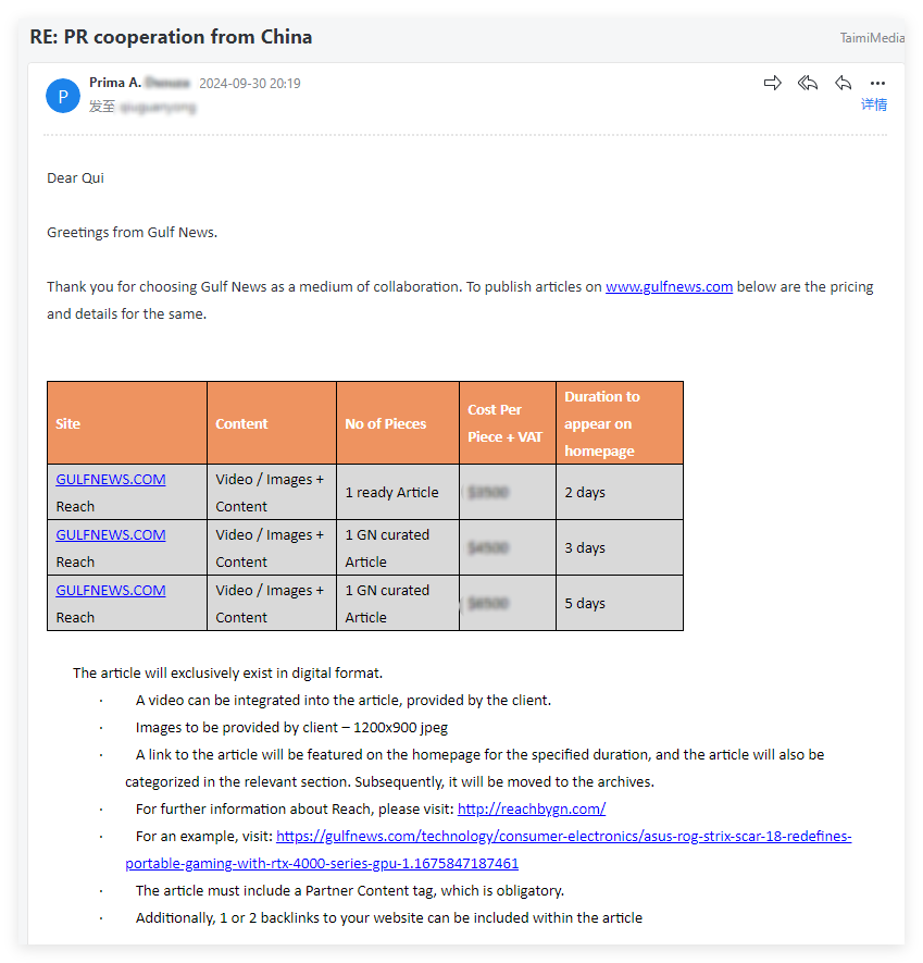 然而,中东市场的繁荣也伴随着高昂的消费水平,这在媒体发稿方面同样体现得淋漓尽致。对于想要在中东地区进行宣传的中国企业而言,充足的预算是必不可少的。海湾新闻GulfNews作为阿联酋销量和访问量最大的英文新闻媒体,其发稿价格自然不菲。但苔米传媒通过与海湾新闻GulfNews的深入沟通,为中国企业推出了多种性价比高的新闻发布方案。