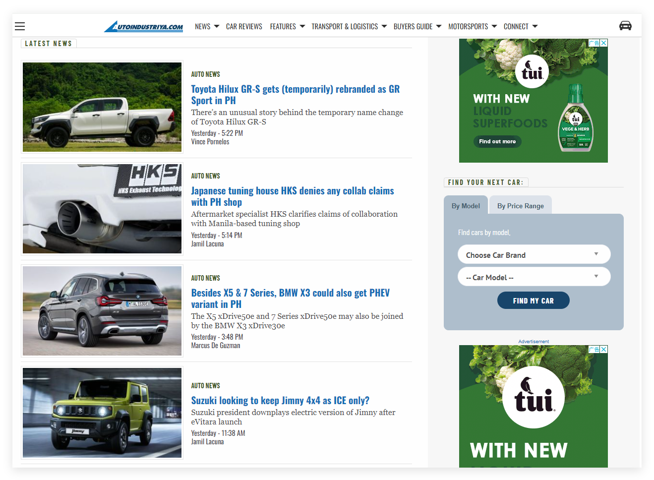 AutoIndustriya,作为菲律宾领先的汽车数字出版物,自2000年9月创立以来,始终致力于为高端消费者提供最佳的浏览体验和最新的行业资讯。其全面的内容覆盖新闻、车展报道、专题文章、汽车技术、道路安全等多个领域,为汽车爱好者和车主提供了丰富的信息来源。此外,AutoIndustriya还深入报道菲律宾赛车运动,成为唯一一家提供全面赛车新闻的菲律宾网站。